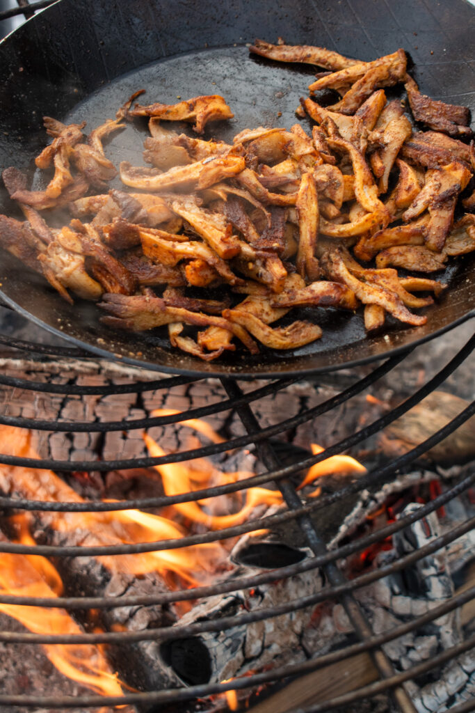 På en del af turene tilbereder vi i fællesskab de vilde råvarer kombineret med dyrkede økologiske/lokale råvarer. Rustikt, enkelt, vildt og velsmagende. Vi bruger råvarer i sæson, vildt, fisk, økologi og alt det vilde vi kan finde – se udvalgte ture her: :